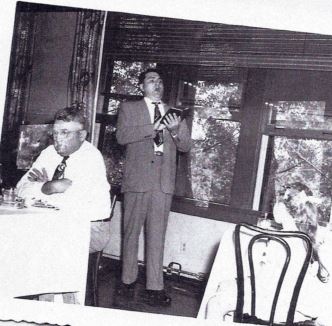 Dad sings at Hillsboro Family Reunion-1950s; Mother used to say: "He just stands up, opens his mouth and out comes the most rich and beautiful baritone voice." I look froward to hearing him sing again; when he died, Mother and Gwendolyn put a banner across the top of his casket that said: "Sing With the Angels, Daddy!"