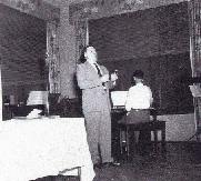 Dad sings Hillsboro Family Reunion-Meno Harder at Left, HCW daughter, Gwendolyn Lois Wall, about 7 or 8 years old, at Right. Dad was often invited back to shis hometown of Hillsboro, Kansas to sing at various Mennonite Church and Tabor College Events and activities-like "THE MESSIAH."
